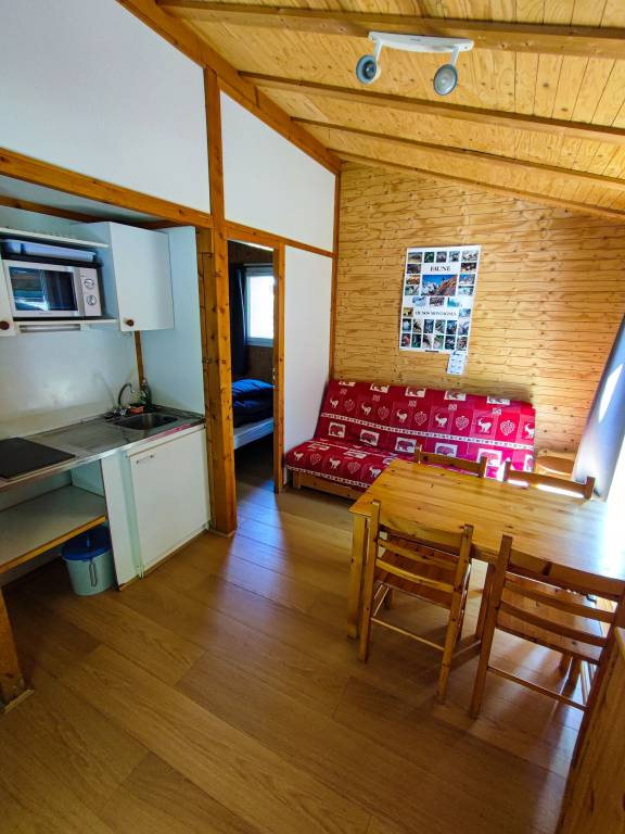 Nos 2 chalets Marmotte sont fabriqués par Ballario; ils sont rénovés et améliorés au niveau de l'isolation, du sol et des équipements.