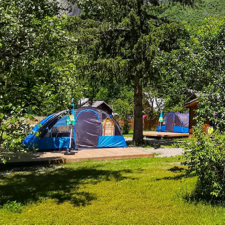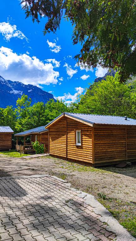 Pour un séjour inoubliable en Oisans, à deux pas des stations de montagne Les 2 Alpes et l'Alpe d'Huez, en immersion dans la nature préservée du Parc National les Ecrins, le camping Le Champ du Moulin en Isère vous propose la location de 9 chalets, 2 tentes meublées, 4 appartements meublés et un gîte d'étape (7 personnes).